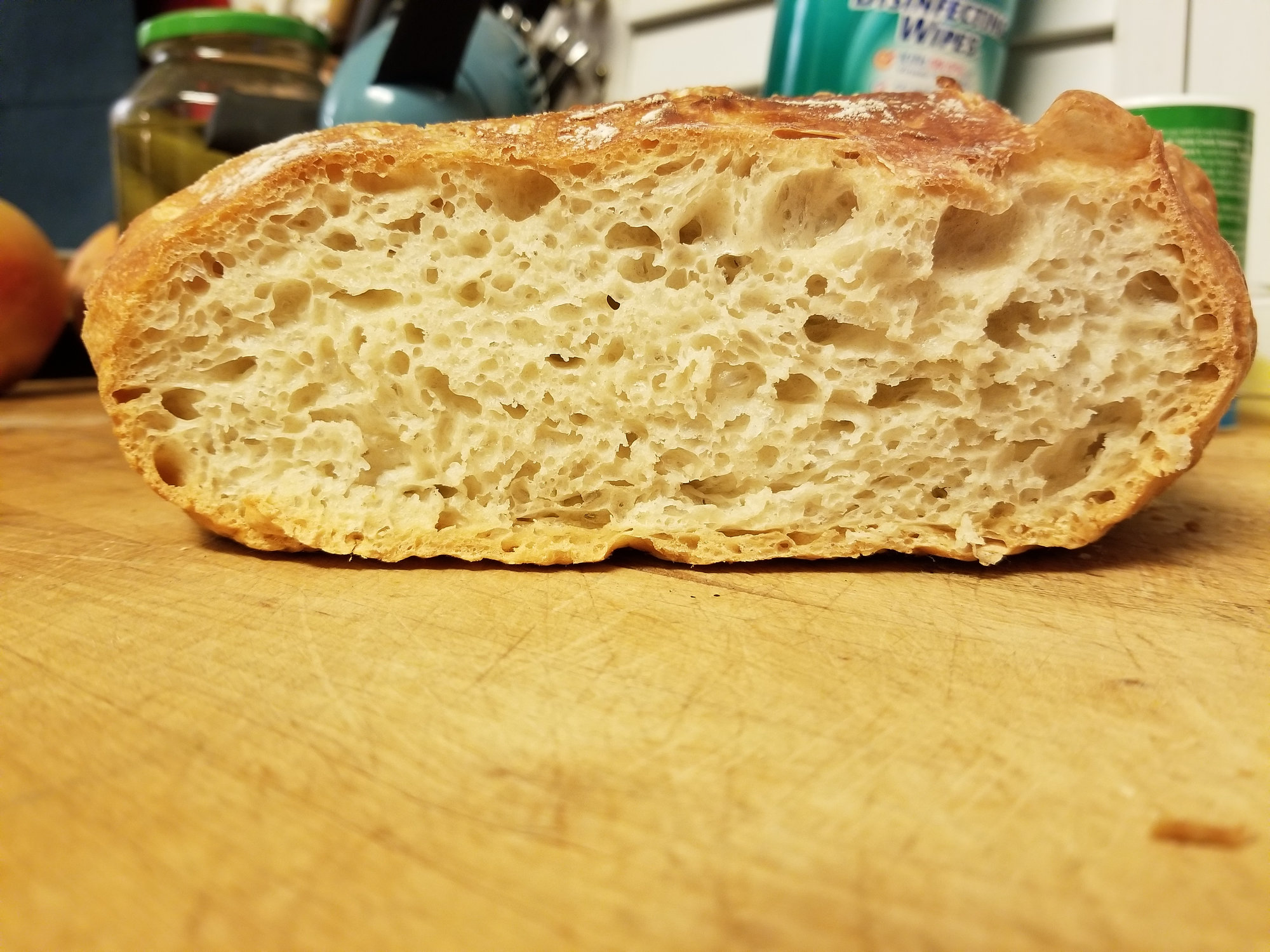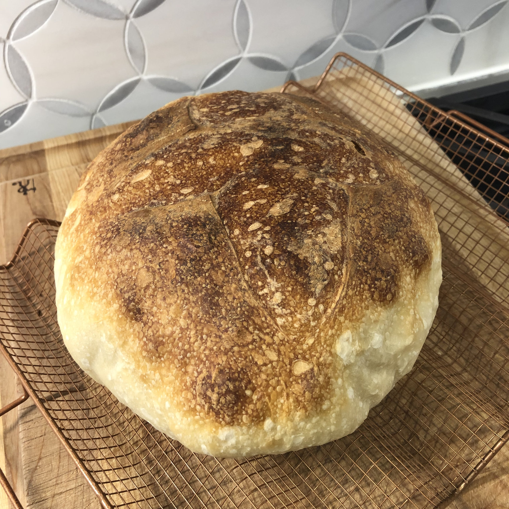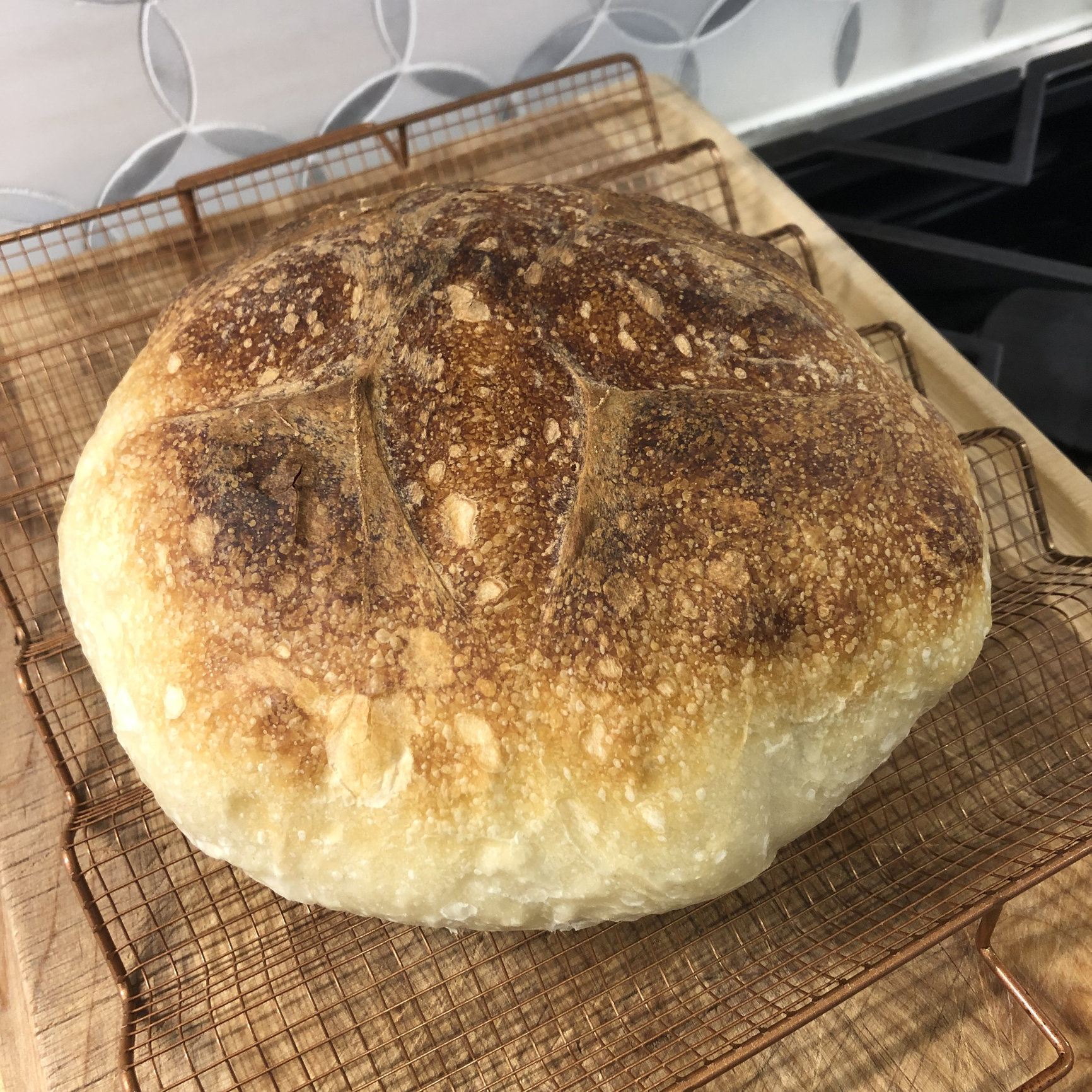 Re: the starter's pedigree, I made my starter the old fashioned way in Dec 2017 (I think). It plugged along for several months, but then seemed to lose some of its vigor, so I arranged a conjugal visit for it with @20stone 's starter, which I believe he obtained from Andrew V (star butcher at Revival Market here in Houston, and all-around terrific guy). At some point, John's starter went south, so I gave him some of mine to get him back in the game. A part of that then made its way to @blind99, and then on to you.