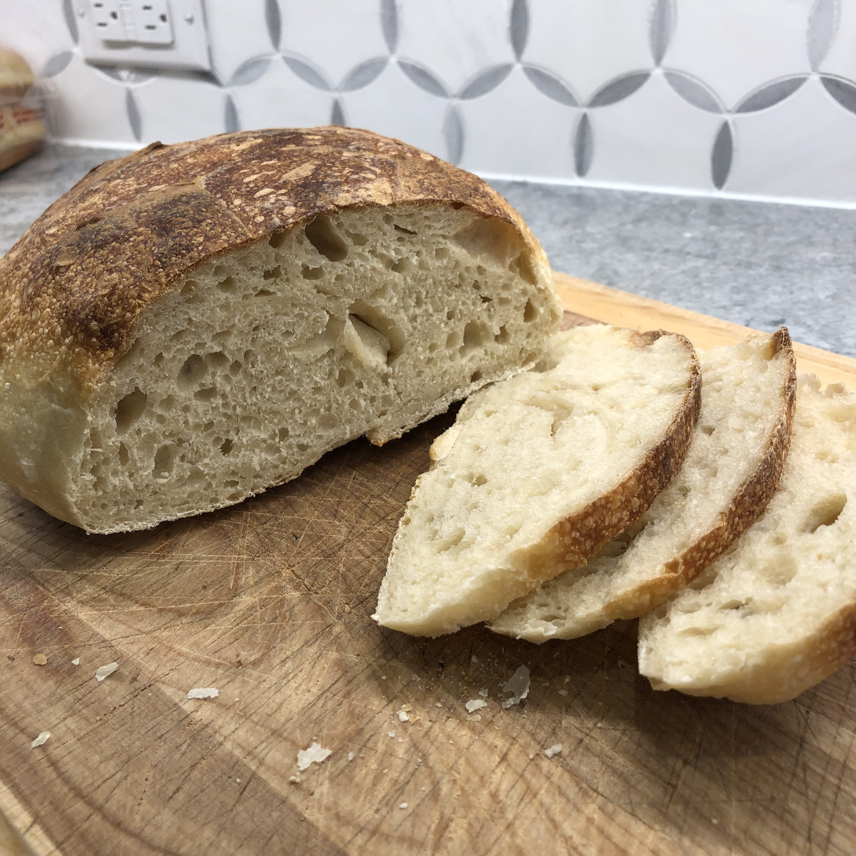 And first loaf, baked this morning. Waiting until the kids get home from school to slice it. It feels heavy, might be too dense, but we'll see...