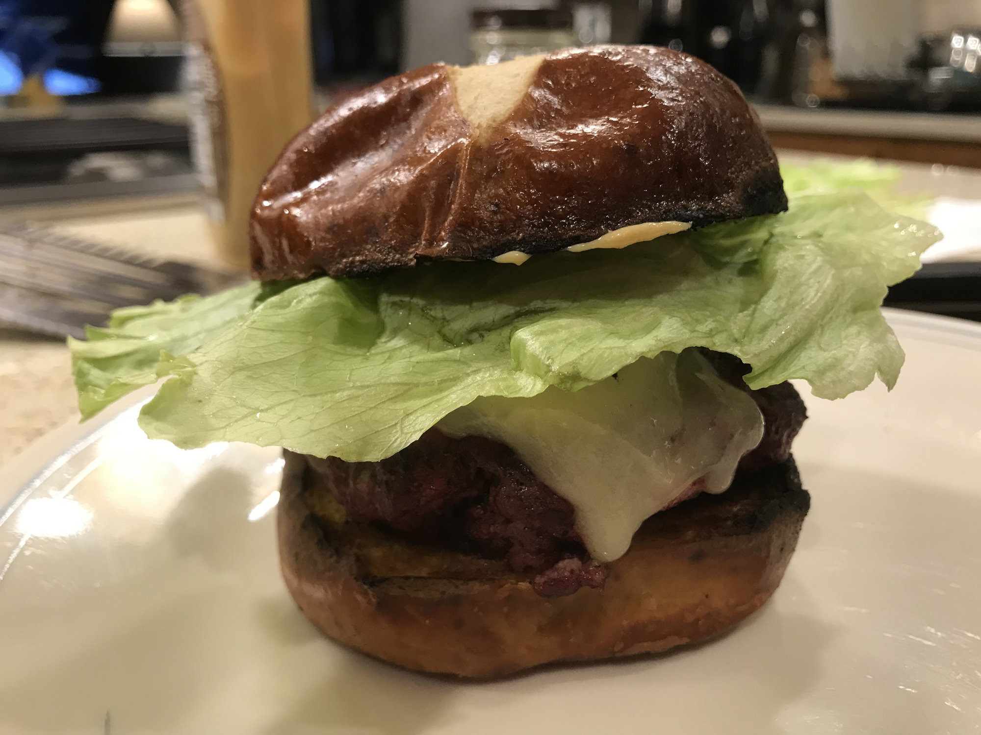 It was definitely different.  My wife and I absolutely loved it.  It had a sweet taste, obviously.  I hit the temp dead on medium.  The combination of the fresh grilled pretzel bun, nutmeg in the meat, perfect temp, and grilled apple made for a really different flavor.  I'm pretty good at burgers (as I'm sure I'm not alone here) so when I go out to eat, I rarely find a burger that really hits the mark.  That said, however, I typically stay in my comfort zone when I make them at home.  The typical: bacon, fried egg, mushrooms, lettuce, tomatoes, etc.  This was outside of that normal comfort zone given the flavors added here.  But it was great!  Oh, and just to add, that was 1 tsp. nutmeg in just over a pound of 80/20.  Not overwhelming - just complimentary.