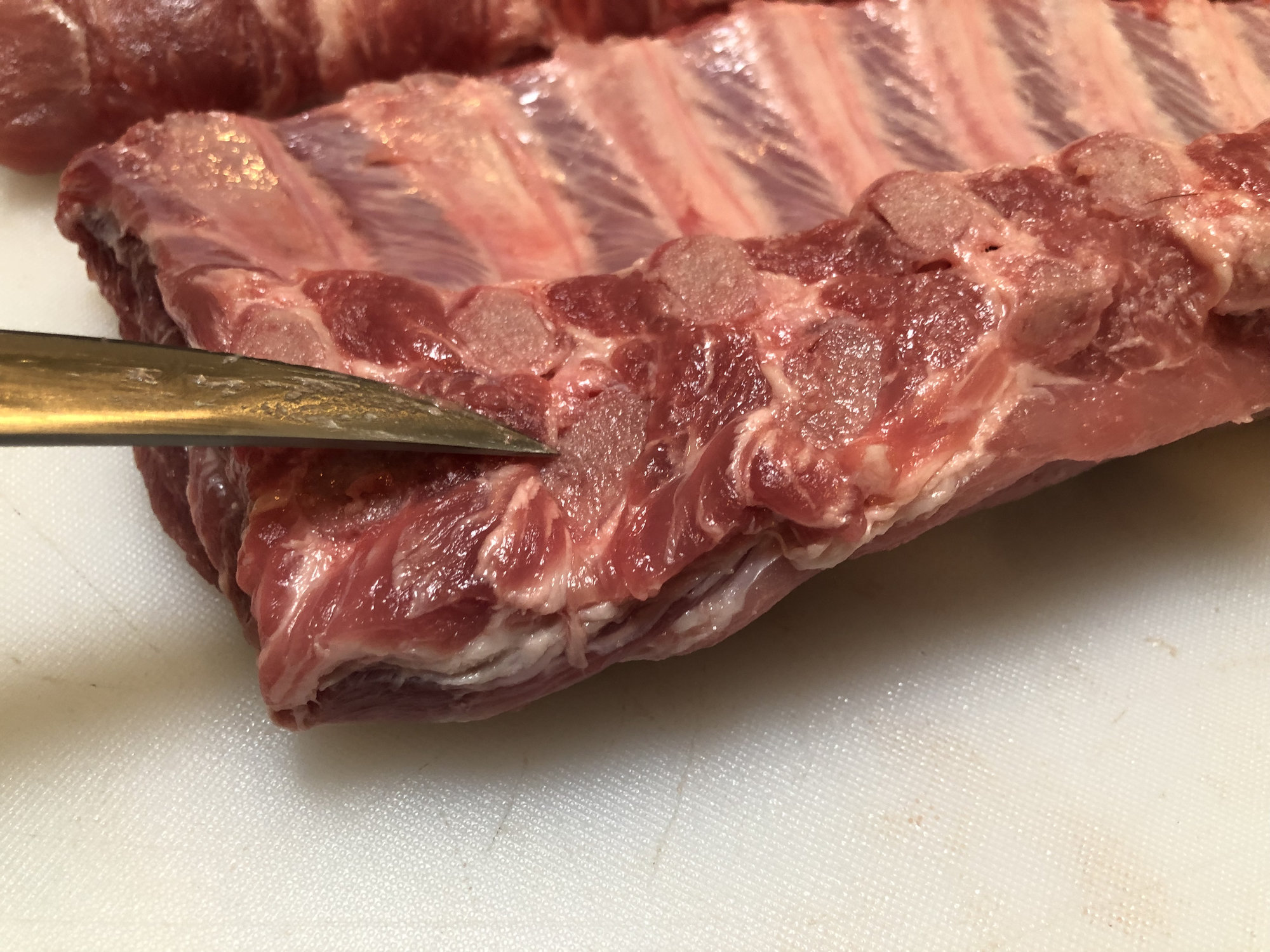 I always assumed they where part of the spine. Poor butchering. I appreciate them leaving so much loin meat on the “loin back” ribs but cutting through between the bones when they are butchers like this is a real PITA. Rib tips are from the bottom of the rib cage, no? I believe this is the very top. Maybe?