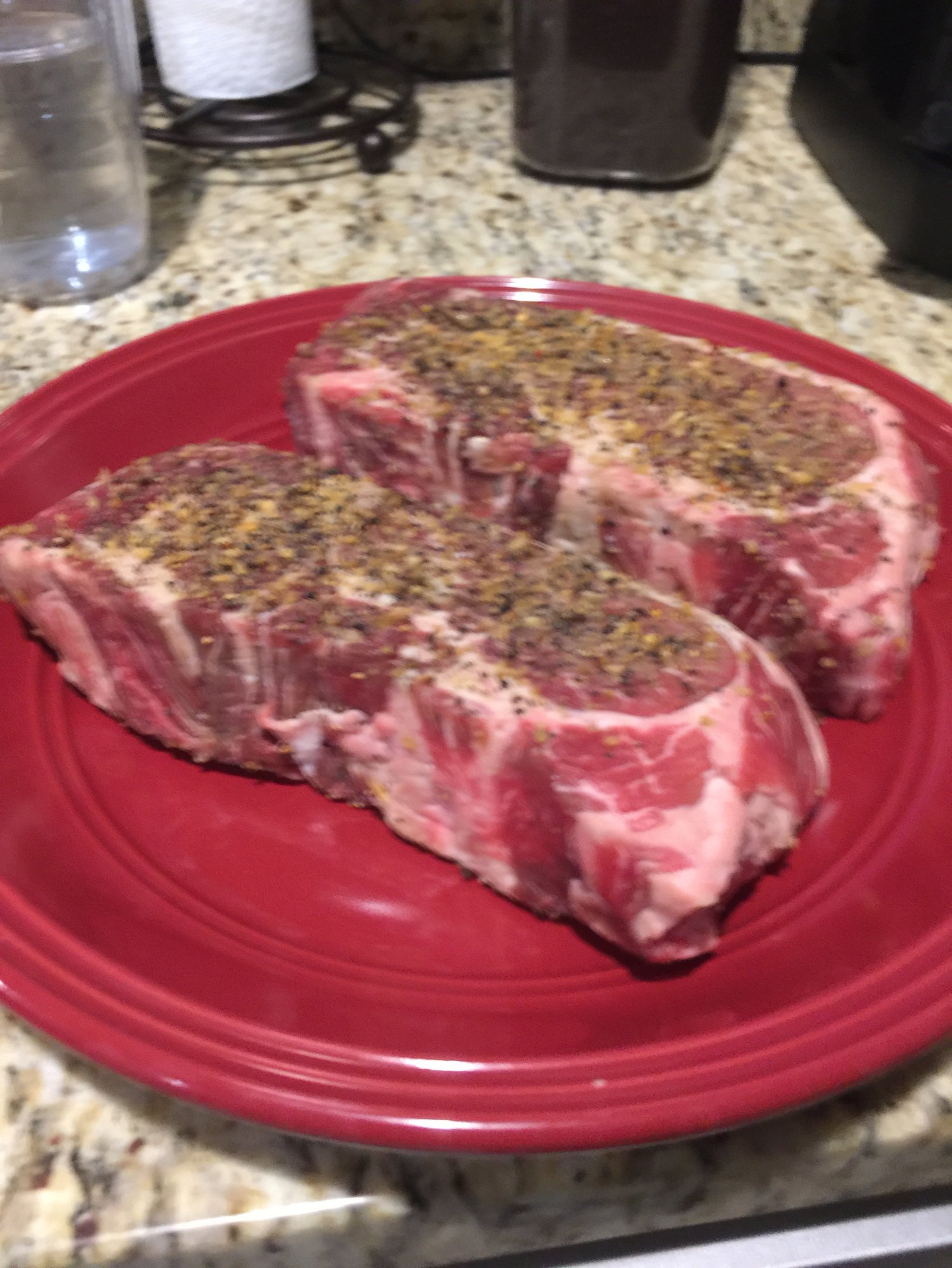 Normally my meat purchases at Costco are brisket, chuckies, ribs and chicken. Have been out of Ribeyes for a while so grabbed some the other night and did a reverse sear on 2 last night. Did a little different though- put them on the AR 3 inches up from the iron grate at 350 till they got to 105 then pulled them off, then took out the top grate. Left lid open to get heat up and then seared. Really hit the spot and were very tender ! Enjoy..