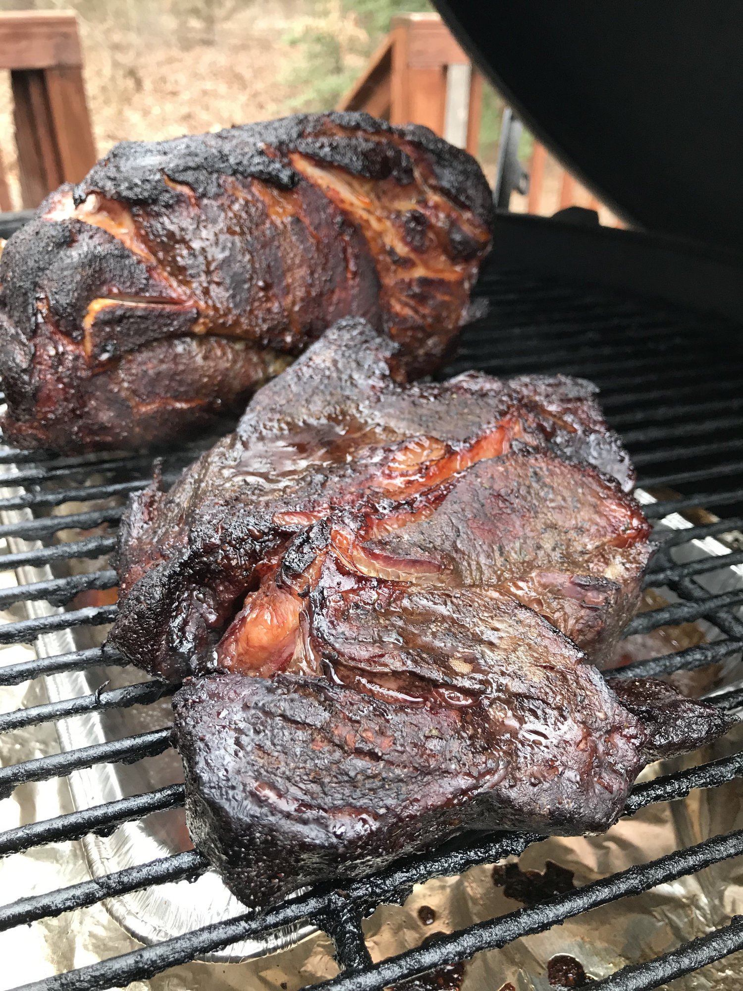 i spent the day smoking a chuck roast and a pork butt. I cooked the roast at 300 until it hit about 208 and was nice and tender. Shredded it up and made the best beef stroganoff I’ve ever had (no offense mom). Made some scratch biscuits to go with it. Oh yeah, shredded the pork and vacuum sealed it for the freezer. Not a bad way to spend a Friday.