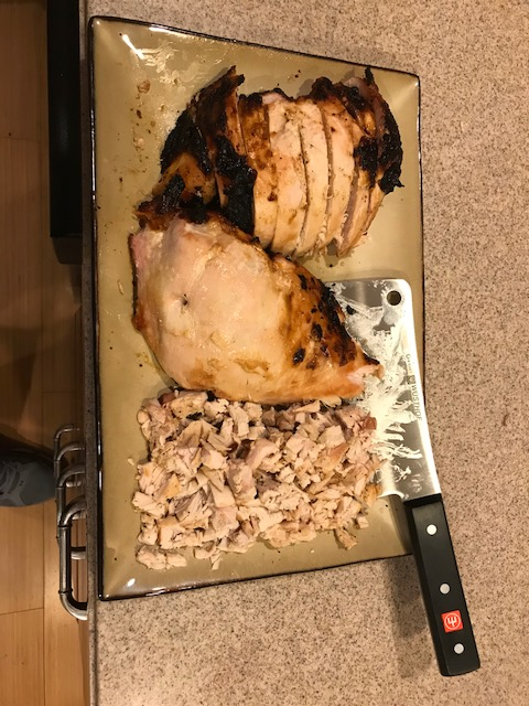The trick to good turkey is butter.  Yes that’s right good old fashioned butter.  I use almost 1lb of butter under the skin and injected into the breast of the turkey.  The other thing I’ve found with poultry in general is you need to cook it hot enough.   What I mean is my chicken and turkey are much better when I’m cooking at 325 vs 225.    The truth is for whole birds I like 350-375.