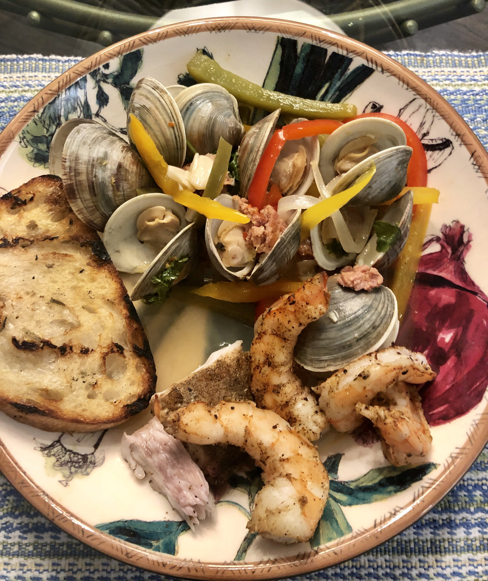 Clams, Shrimp and Mahi (+ andouille) (and thighs)