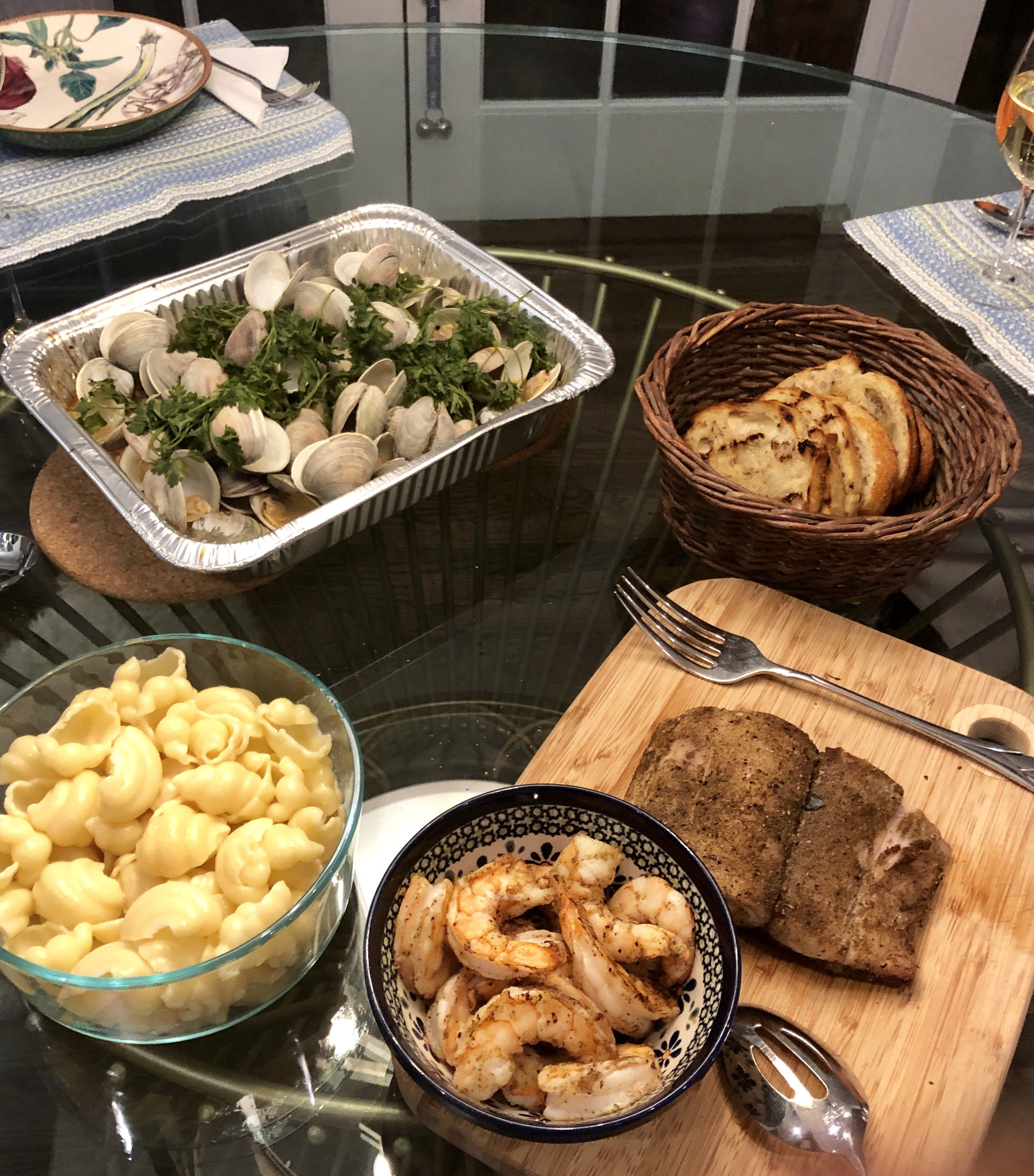 Plus grilled rosemary sourdough bread (store bought) and pasta (same) for those who aren’t running from carbs.