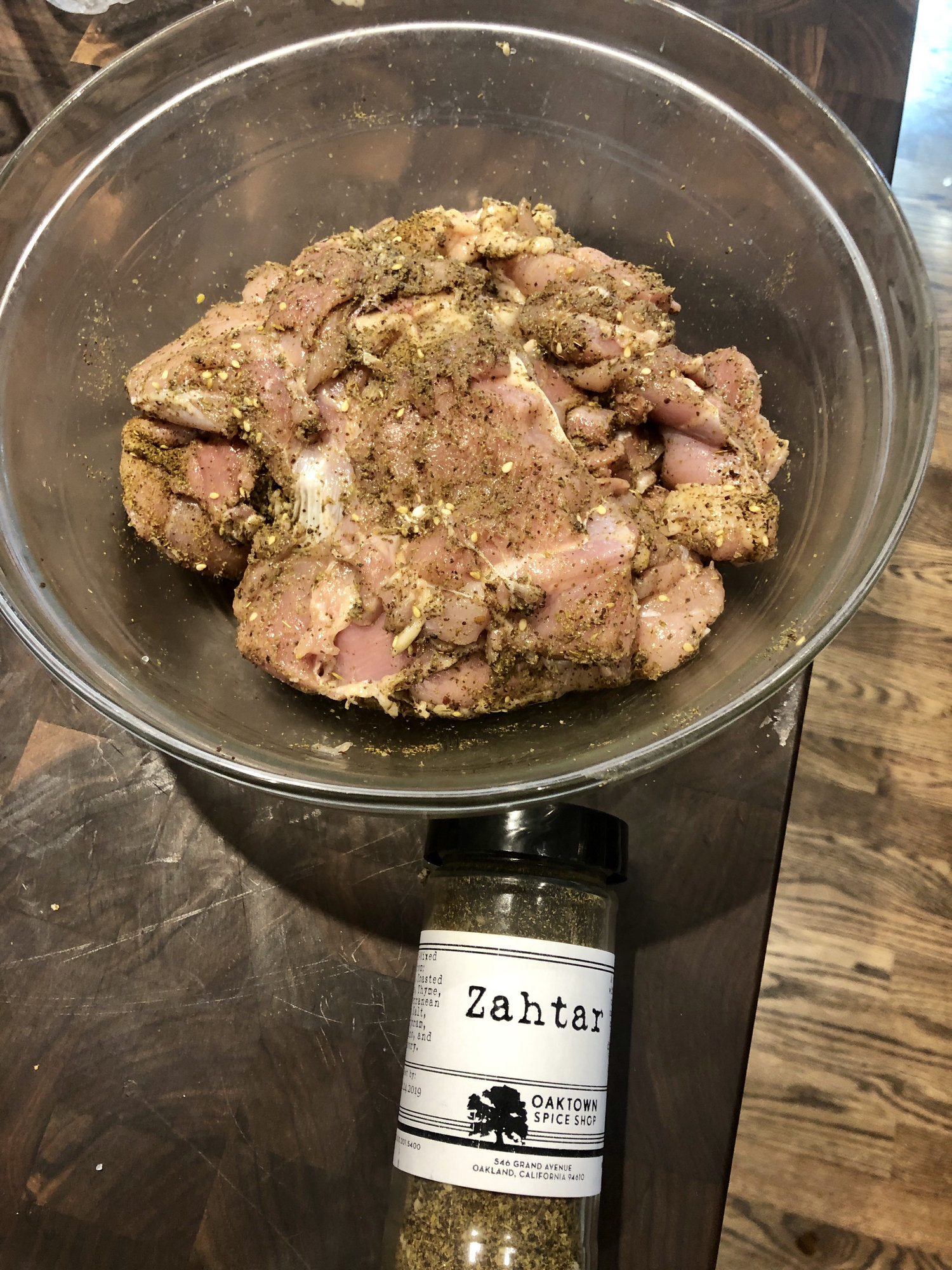 Plus thighs 2 ways for lunch this week. Dry zahtar rubbed and sticky mango-lime-gochujang-sriracha.