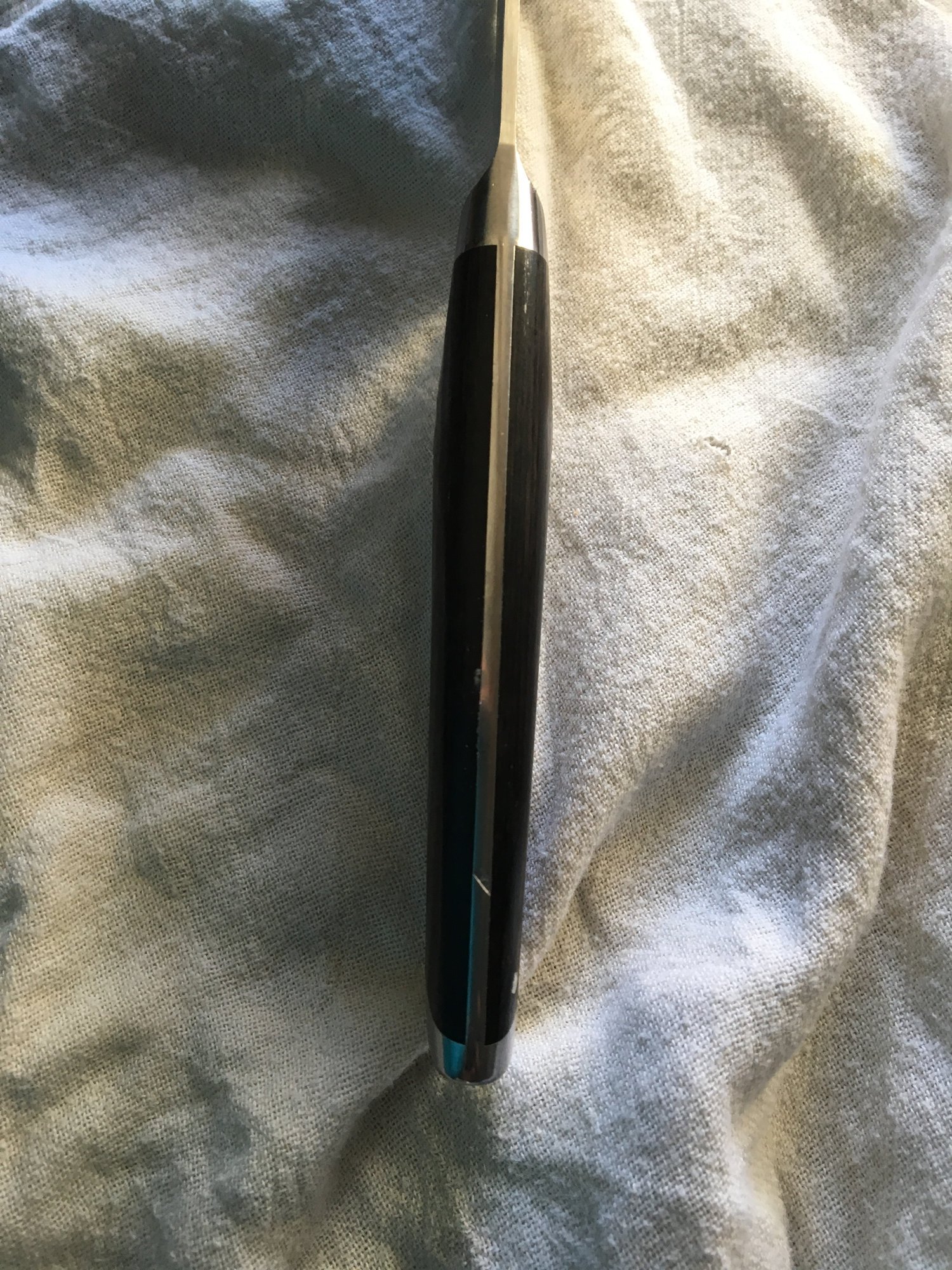My Shun Kaji has a real slim handle, verses the traditional round one on most Japanese knives. Makes a big difference on feel, which is why you need to try in person.