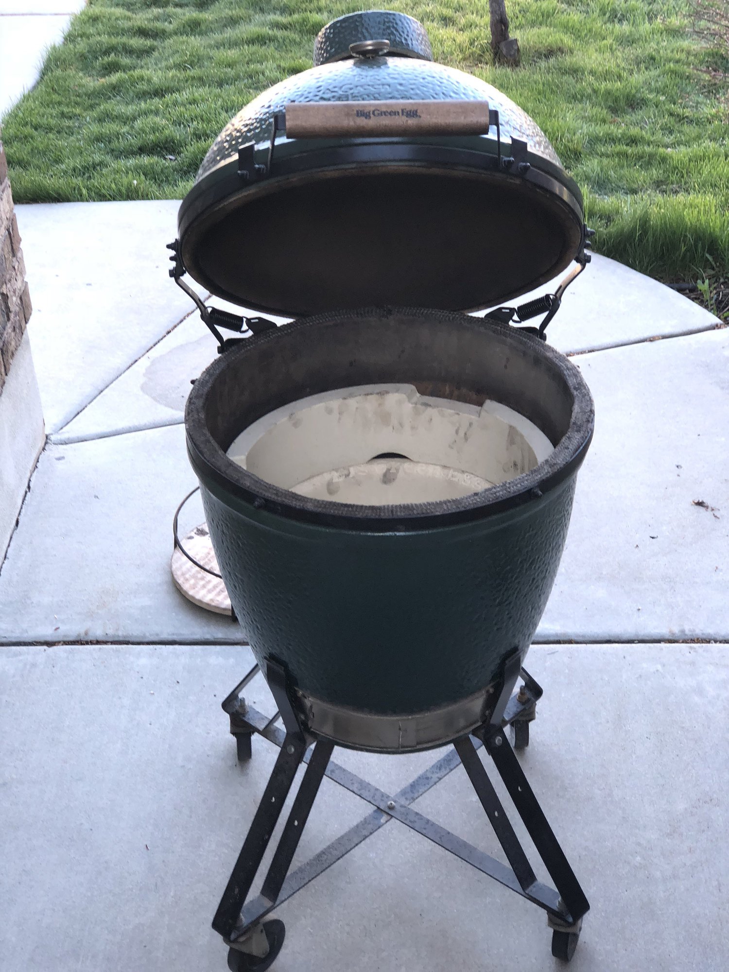 Sorry you have to get rid of the MM. Dont forget to list on facebook marketplace as well. Huge audience there. I am with @Photo Egg, on the cleanup up the eggs. I dont recommend a nuclear, run it wide open clean burn because there is always potential to crack, and melt a gasket. But I would run it for a while at 550-600 to clean it up, and a cheap gasket replacement never hurts. I have sold three eggs in the past. They all went incredibly quick, and I believe that is because I priced them in between the low ball amount, and what I would want. Here is one I sold that was almost 8 years old when I sold it. I sold it for more than I paid for it brand new. (upgraded bands however, and warranty firebox/ring inside, making it look real new