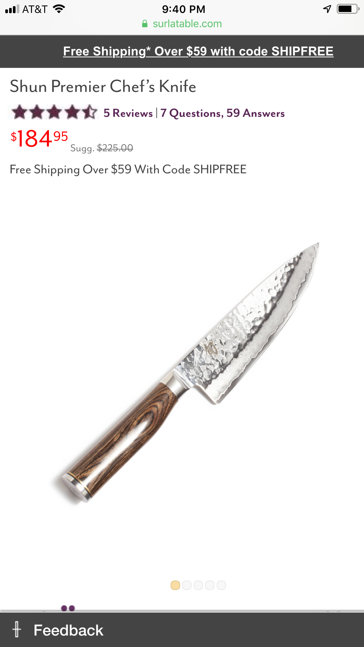I’m totally shun premier. The hand hammered finish of the knife releases food easily. Lifetime sharpening and minor repair. Check your local Craigslist. I got most of mine that way, or piece by piece on ridiculous sale....