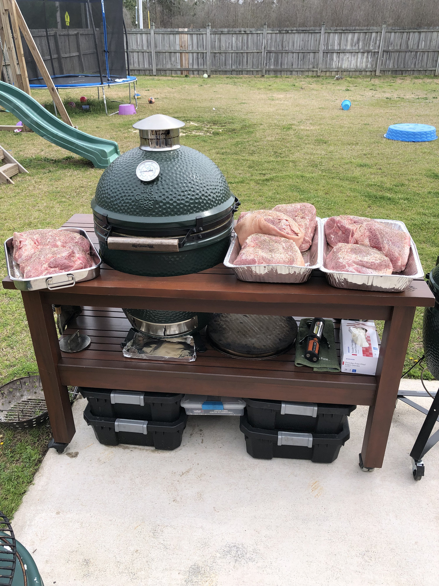 I get asked how much meat will fit in a large egg all of the time so now I have a good answer. Going to a potluck wedding reception tomorrow and this is my contribution. I’ll keep you posted as the cook progresses. Long time viewer but first time starting a thread. Pictures loaded in the wrong order but you get the idea