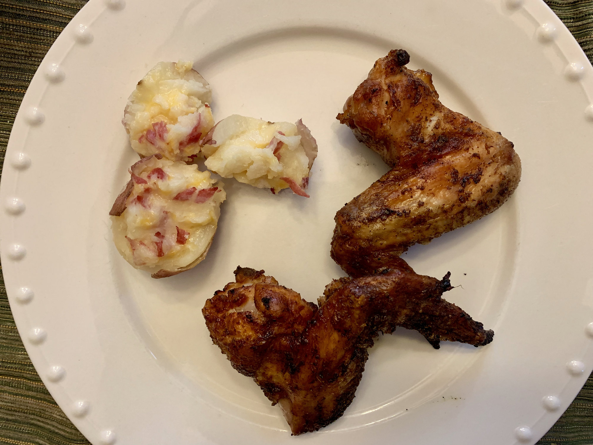 Set the wings in the fridge for 8 hrs. Sprayed with Duck Fat and applied DP Spicy. Skin was crispy and rub was spicy but not overpowering.