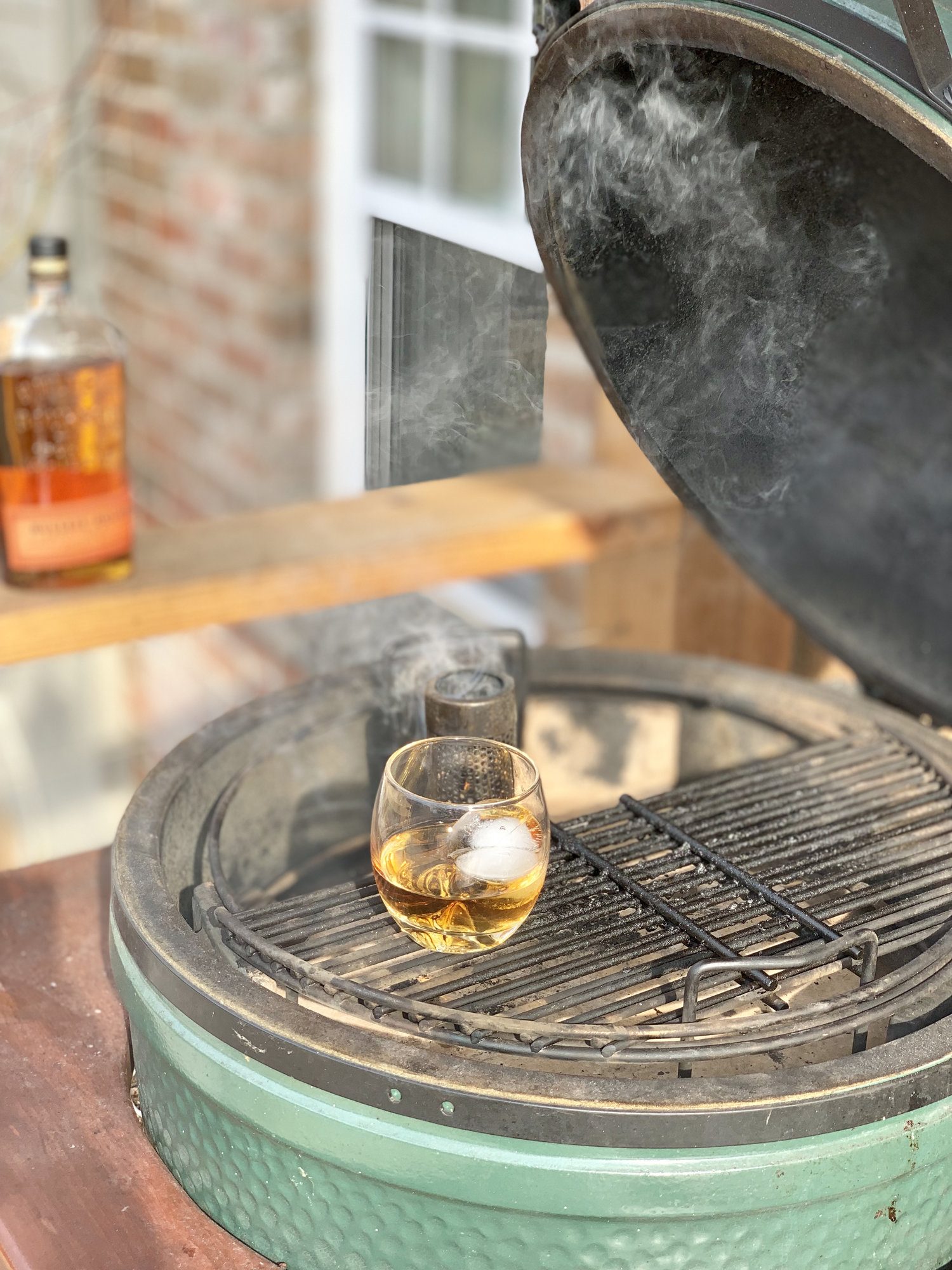 Most cocktail bars use a smoke gun to enhance some of their whisky based drinks. I don’t have a smoke gun so I often smoke a bottle to have available for these types of drinks