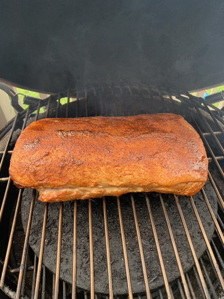 Threw a quick pork loin in for dinner. Rubbed with Caribque Honey Heat (one of my favorites).