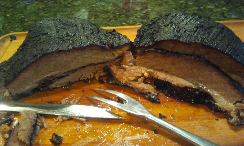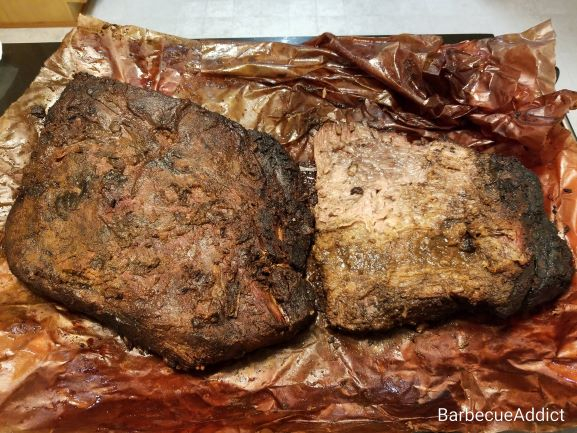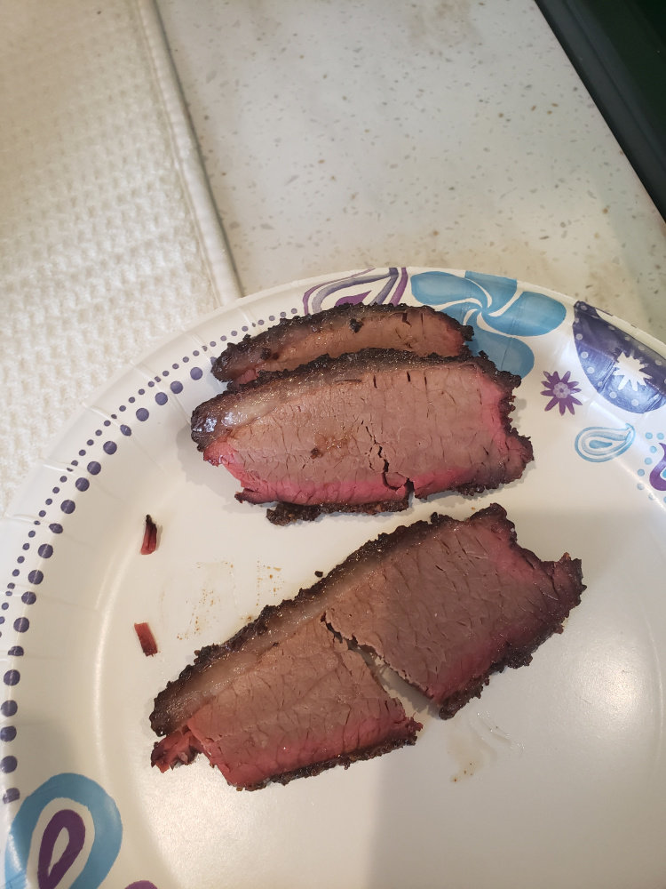 FTC'd for 3 hours and then separated the point from the flat.  Rich, beefy taste.  Juicy and tender.  Good stuff.