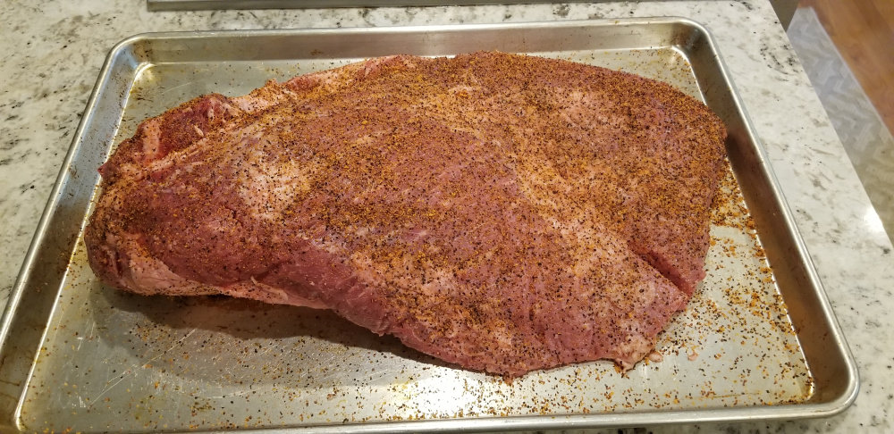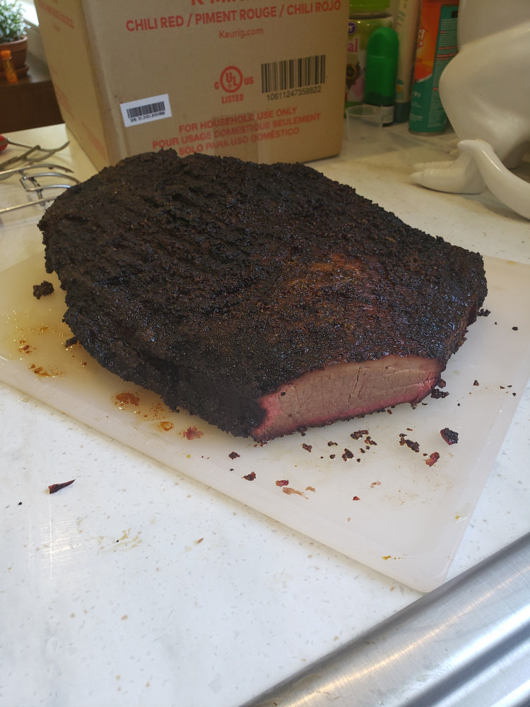 The below Creekstone high choice was a true banquet.  Around 11 lbs post light trim and 10+ hours at about 270-280*F on the calibrated dome.  2 1/2 hour cooler rest and then go.