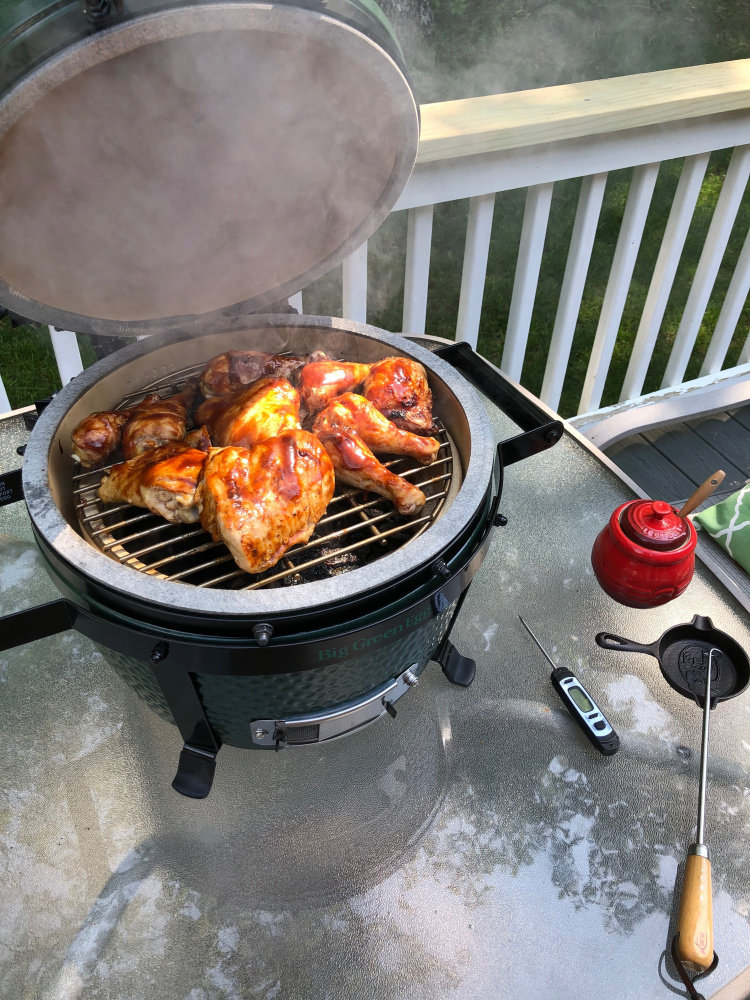 Here's a quick picture of my first MiniMax cook. My wife loves BBQ'd chicken, so since she didn't balk about my newest Egg purchase, I thought the least I could do was cook one of her favorites! You know what they say: Happy wife, happy life!