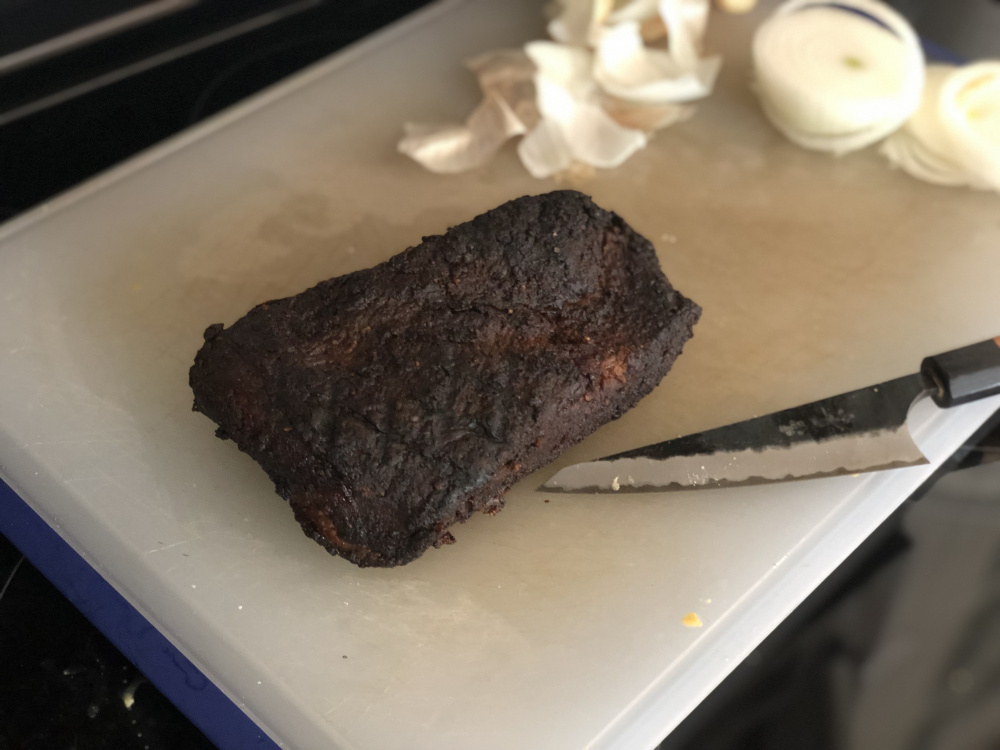 Congrats on arriving home with your expanded family. Glad all are doing well, especially Mom and baby!Way to help out in the kitchen with brisket