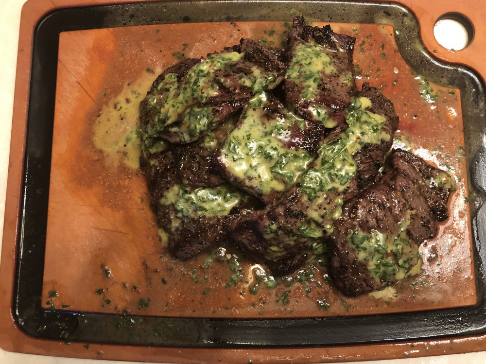 You cooked some of my all time favorites. Chimichurri is fresh and tangy; perfect for the heavy fat in any steak. And oven roasted potatoes done well are something I can eat any time. That meal was delicious I’m sure.Coleman, Texas