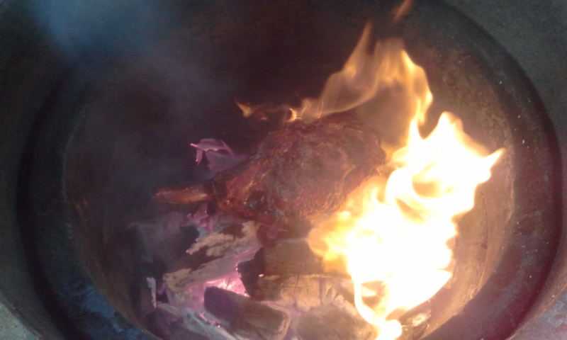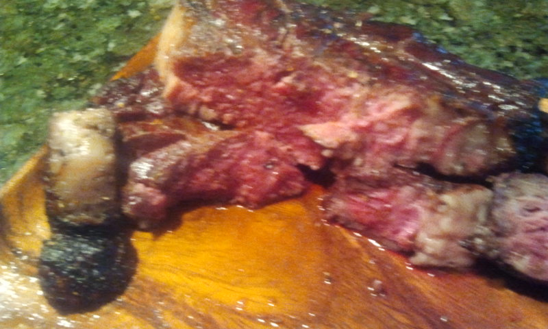 As mentioned above, here are the standard low-grade pics of tonight's reverse sear caveman finish 2 lb and 2 inch thick prime from Costco: