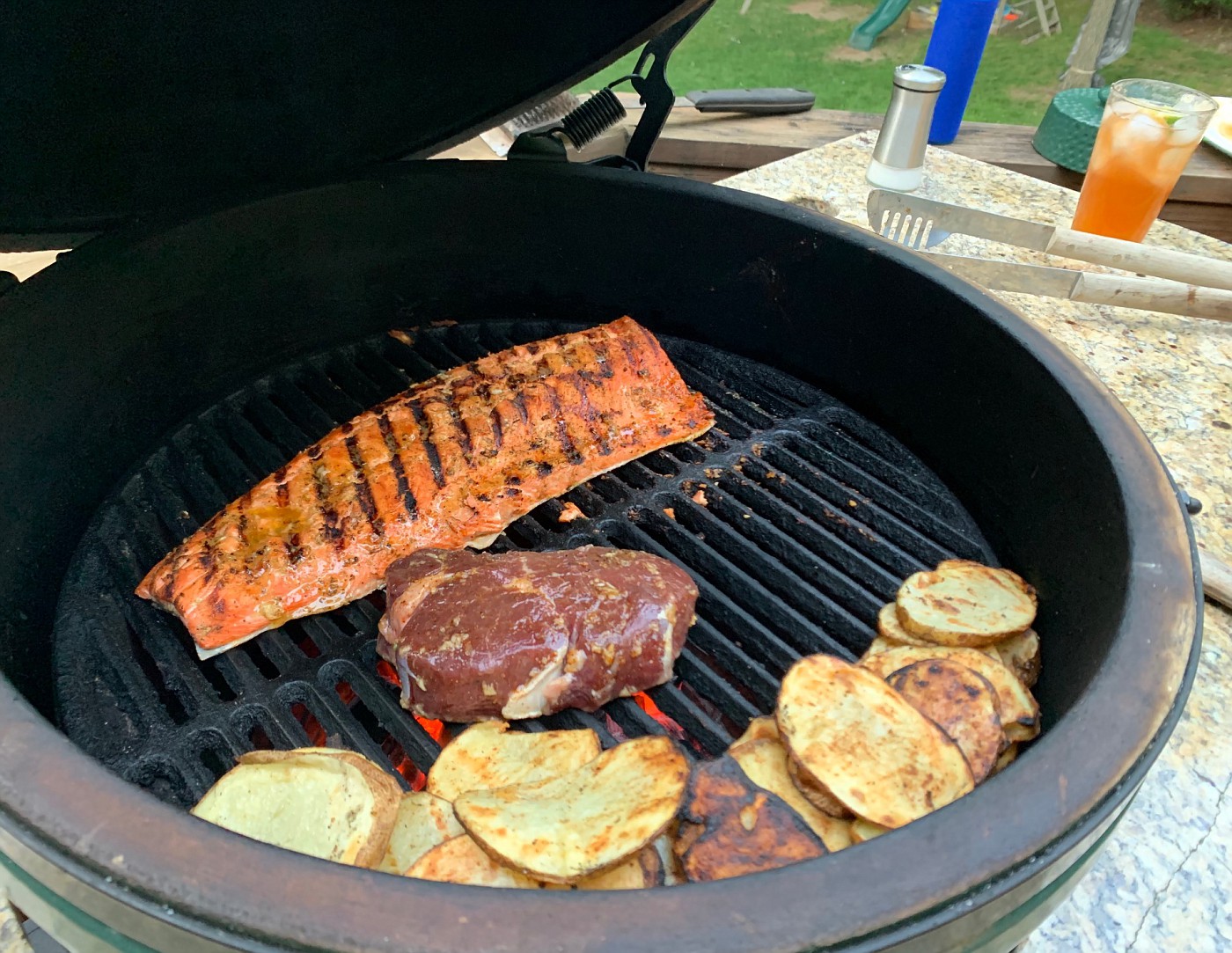 blind99 said:awesome cook. this is some grillmaster level cooking here: no fretting about raised, direct, indirect, grill baskets, reverse sear, etc (guilty myself of all this). just build a fire and cook everything. nice work!Thanks. Yeah, salmon cooks so easily and it's delicious on the grill. Other than what seasoning you put on it, I have no found a reason to complicate the cook. As long as it's a good piece of fish and you pull it when it's medium-rare, it comes out awesome and really takes on the essence of the lump.Put it on flesh side down until you get the color you want on top and then flip it once. The skin will protect the flesh as you cook it to completion.LBGE/Maryland