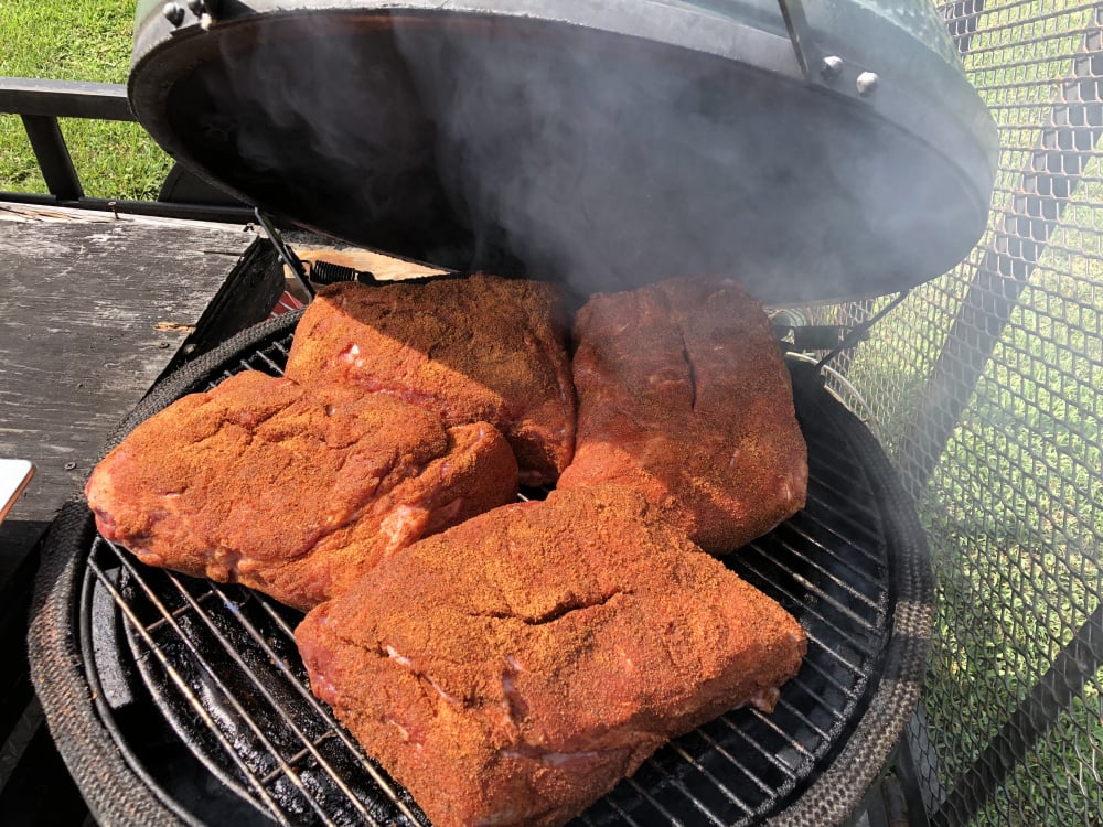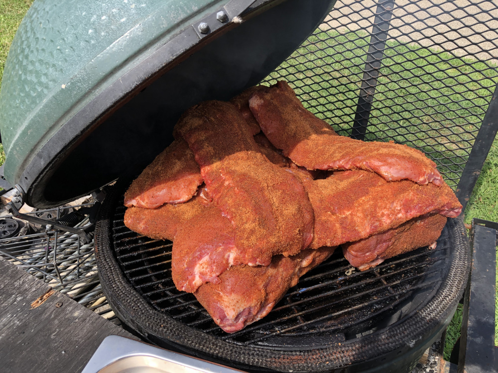After yesterday’s unboxing and de-virgining of the BS, the twins got upset. I love my Eggs too much to leave them that way....so, 4 Butts and 4 racks of Baby Backs should bring them out of the slump while I fix more SmAshburgers, Blackened Chicken Breast’s, and Philly Steak & Cheeses for family tonight!