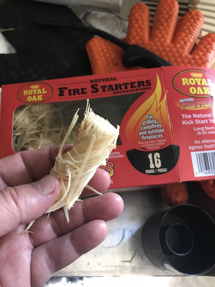 Nah, right before I’m ready to light I take two paper towels and fold them each into approx 3 by 3 inch squares , stack in a bowl and pour enough veg oil on them to lightly soak . Take them right outside . Dig a shallow bowl in coals , the key is to use a small butane lighter , but a regular stick lighter will work if u don’t have one . Light the edges and when it starts burning lightly place a few chunks of charcoal over the burning paper towel. Walk away and u will have flames going soon .mahenryak said: