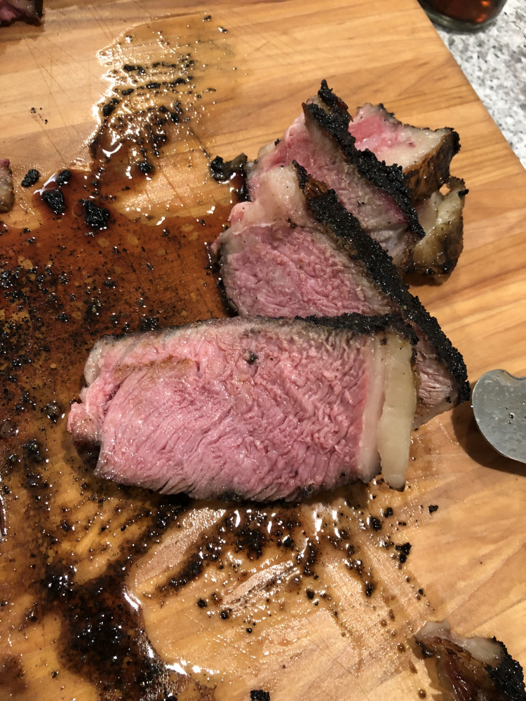 It has been a long time since I have posted anything, still look at the forum daily. I bought a couple of tomahawk steaks from Sam’s club. Seasoned them with hardcore carnivore and the other with Kosmos Q. Reversed seared them on my pellet grill to around 115 and then seared them off on the minimax. It was amazing! Thanks for looking