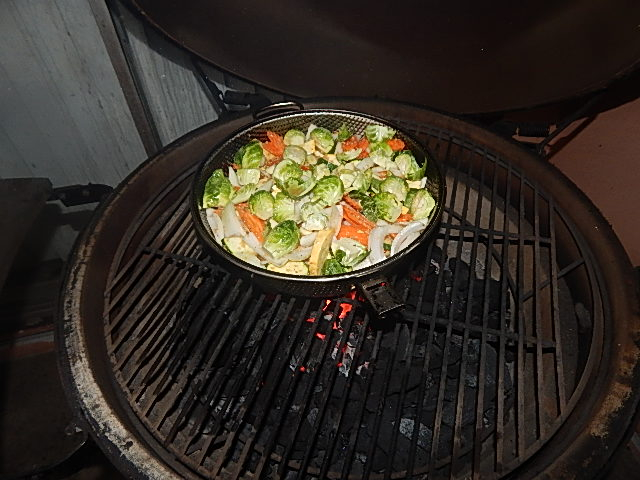 Had the egg already at 500 for some fresh caught swordfish and threw the veggies on right after. Came out great! Appreciate all the help!