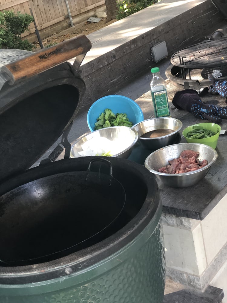 The secret to woking in a BGE is getting a good bed of hot coals while bringing your wok hot as well and then closing your bottom vent while you leave your dome wide open while you do the quick cooking!Re-gasketing the USA one yard at a time