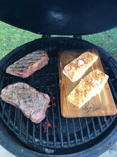 Already had some Salmon on the egg, but now searing the steaks