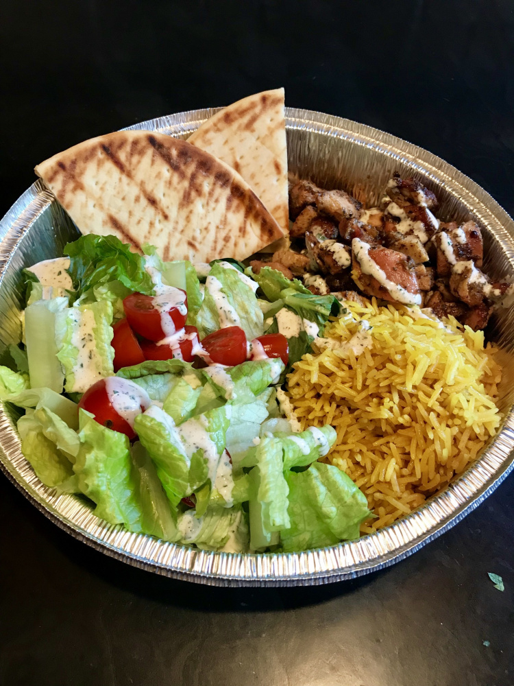 Served up. Hit the meat and the salad with a white sauce made from mayo, yogurt, lemon juice, garlic and parsley