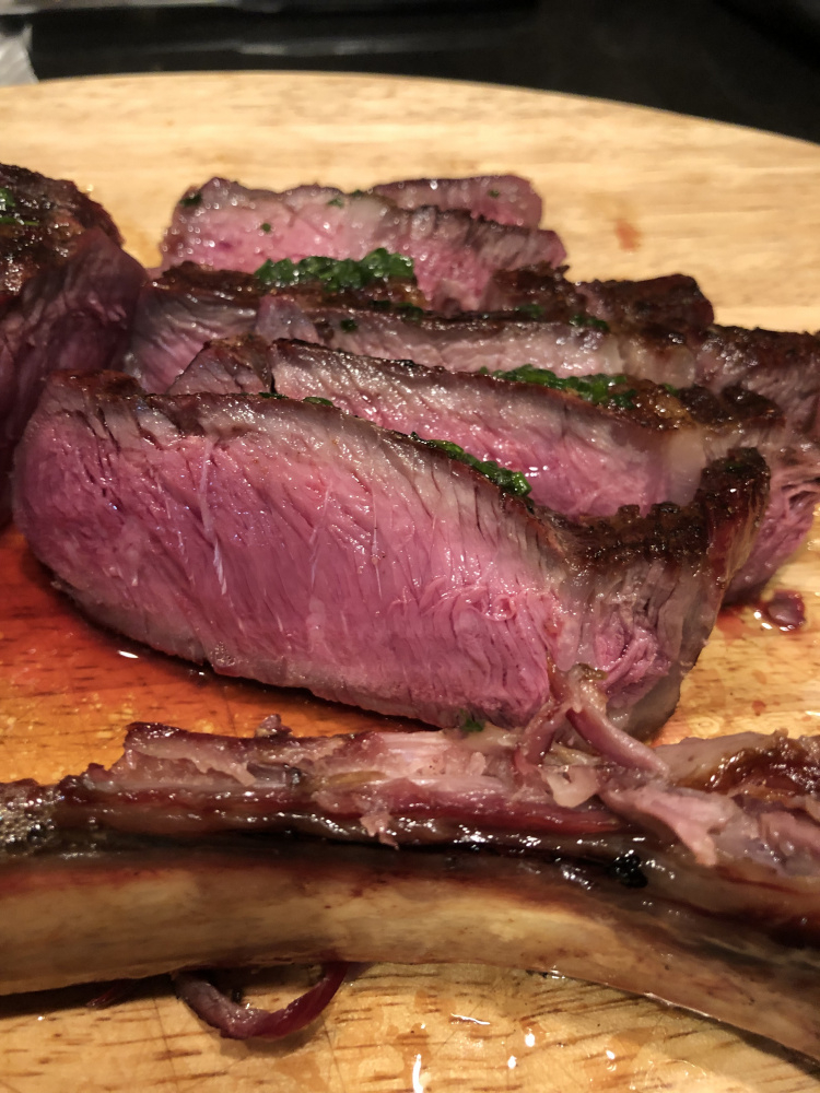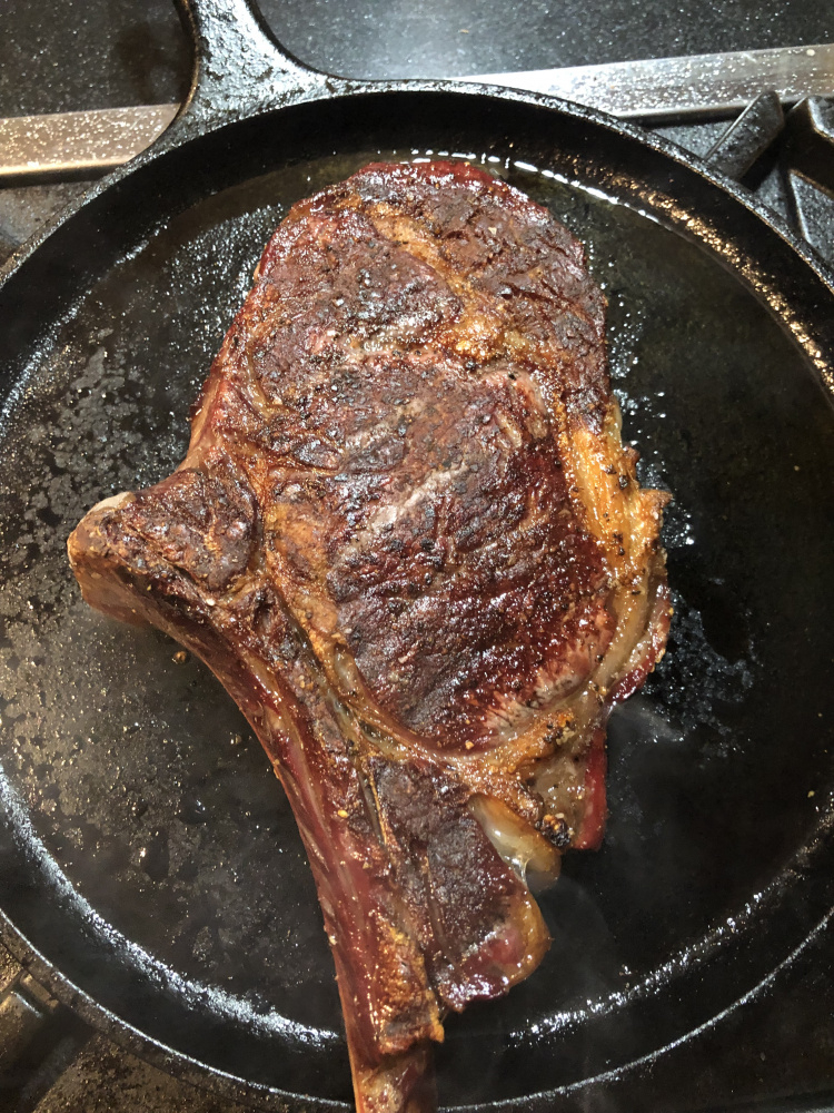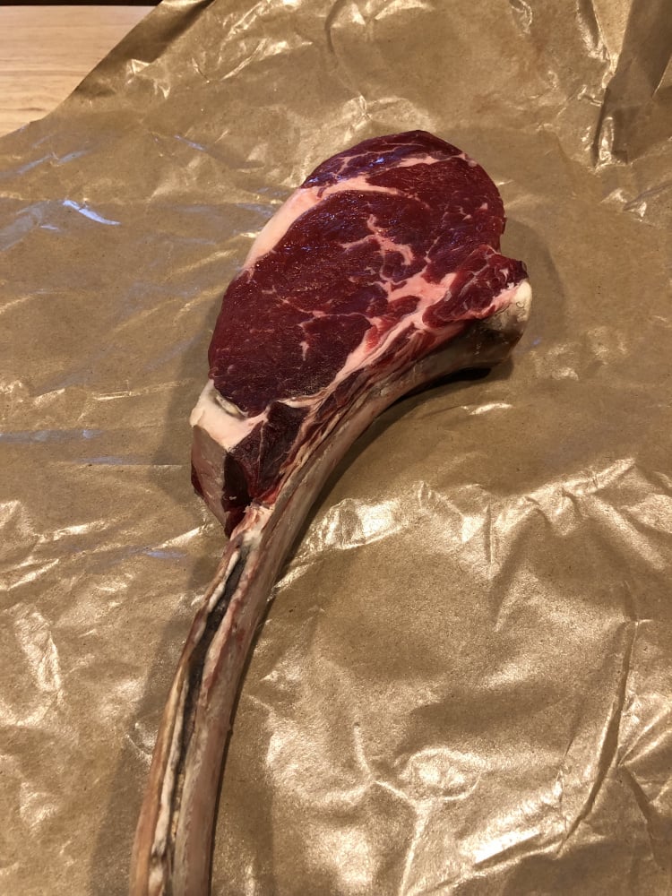 This was a different steak experience- really concentrated beef flavor. It was grass fed which probably had something to do with that. That fat too was so rich tasting. At 35 bucks per pound this will not be a go to.... but a treat nonetheless!