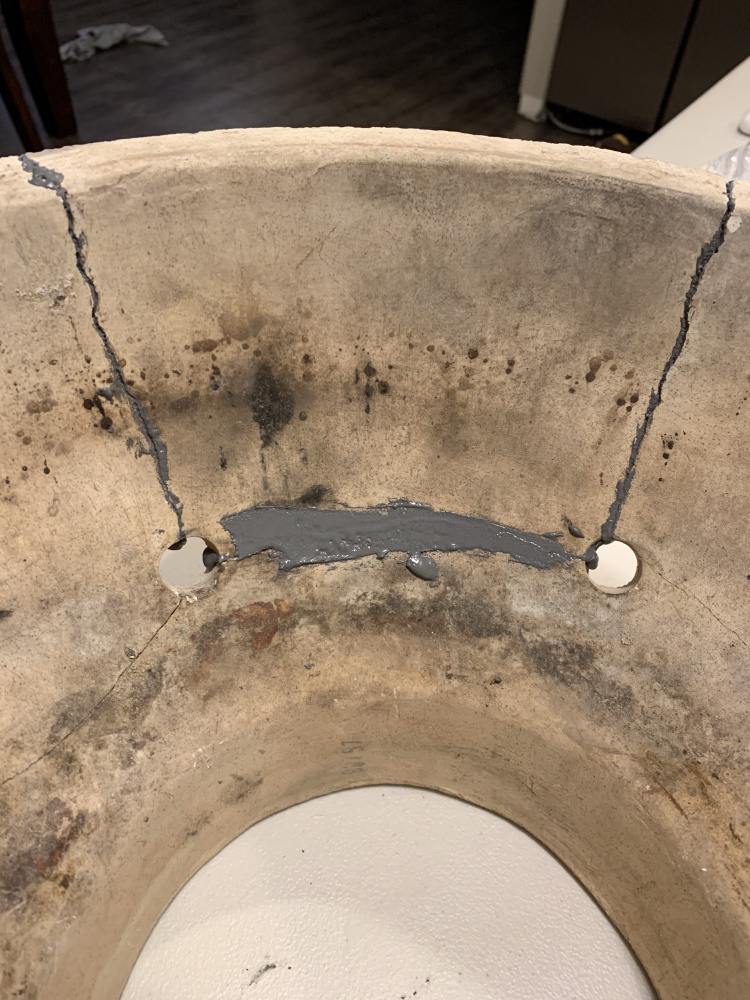 Well, update. I just picked up the firebox by the broken piece, and it solidly holds to the rest of the bowl like it was one piece. If it holds up to the 2400F claim that they have, I would say this was a huge success. The fact that one of its uses is for “outdoor grills” eases any worry I have cooking with it. I think I will also start the fire ring today. I will probably take a week to do that one as I will let each ‘weld’ cure in between applications so I don't have multiple wet joints to deal with.