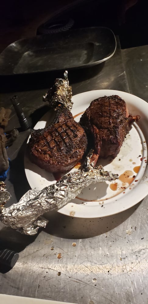 one out but the comfort food on the evening was tomahawk ribeyes $9.99 per lb at safeway and they were incredible