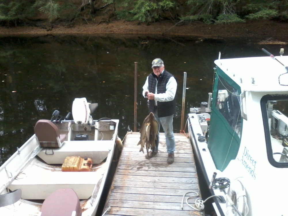 nice togue cook. heres dad with yesterday mornings stringer. buried 14 this weekend in the garden. we marinate them for 4 hours in half and half curdled with lemon or lime then deepfry with jiffy corn muffin mix. no greasy taste this way. the local bios ruined the salmon fishing with these slime darts