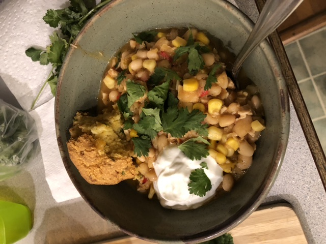 Jumped on that train tonight. Costco rotisserie chicken and instant pot for the beans and the rest of it. Cornbread with a crap ton of jalapeños drowning at the bottom of the bowl.