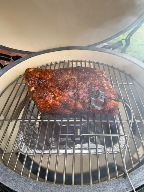 Welcome aboard. Good looking product you got. I believe you may be confused on the thermometer probe you're using. Looks like you got the ambient probe stuck in the side of your pork butt. I may be wrong. The clip that the ambient probe goes through attaches to the grate so you get a reading of temperature at the grate level. The Thermometer on the dome gives you temp. at the top. After you've had everything closed up and cooking for a while, the dome and the grate temps will be very close. You should have a probe that is pointed on the end. That one will be for you meat. But if I'm wrong..ignore my ramblings.