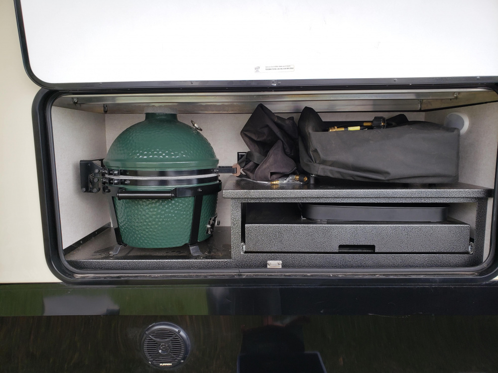I carry my mini max in the outdoor kitchen. I removed the fridge and put in the mini max. I removed the stove and store a 17 and a 22 inch Blackstone.