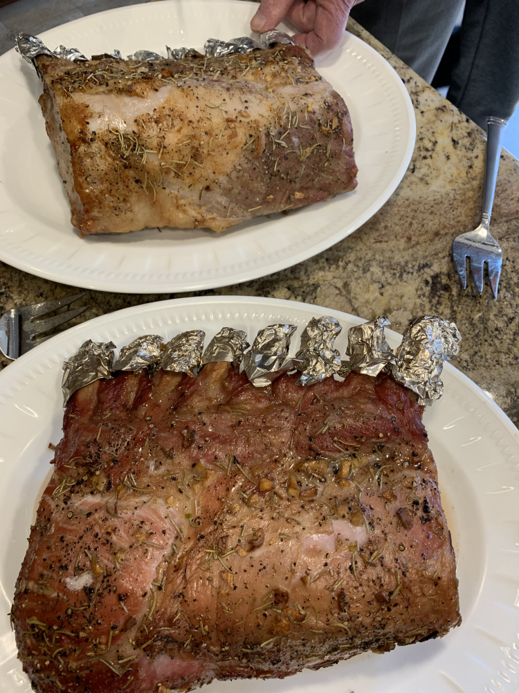 Cooked the “ultimate appetizer” and 2 bone-in pork loin roasts. One was done on the egg with 2 chunks of cherry. One was done in the oven since my mother does not like smoke. But she mistakenly took a chop from the smoked roast and was raving about it. I will never need to do one in the oven again!! Both were seasoned the same: garlic, salt, pepper and rosemary.
