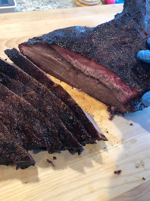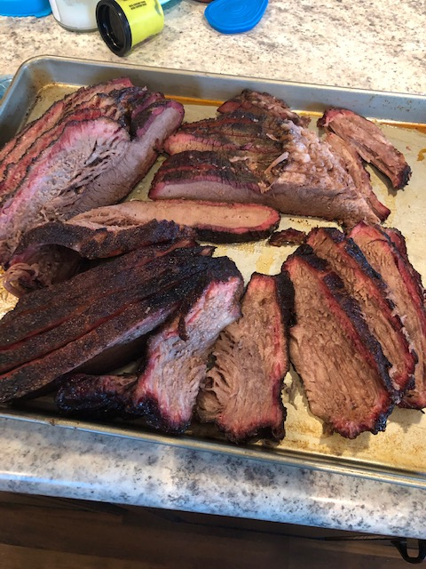 attached are the pictures of my brisket cook this weekend following Aaron Franklin as close as possible. trimmed brisket was 12 lbs, cook took just under 10 hours. Wrapped just over 180 degrees, pulled at 197 degrees and wrapped for 3 hours. I liked the results a lot.