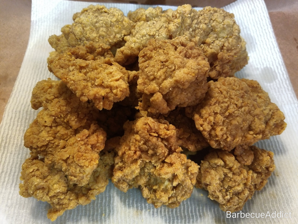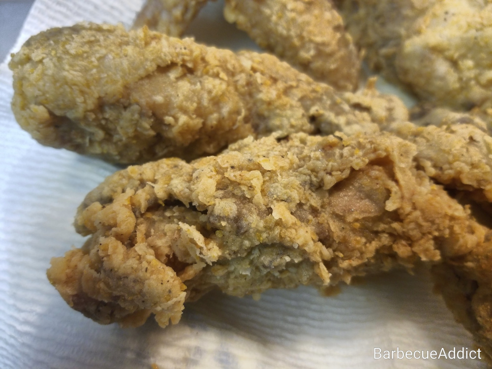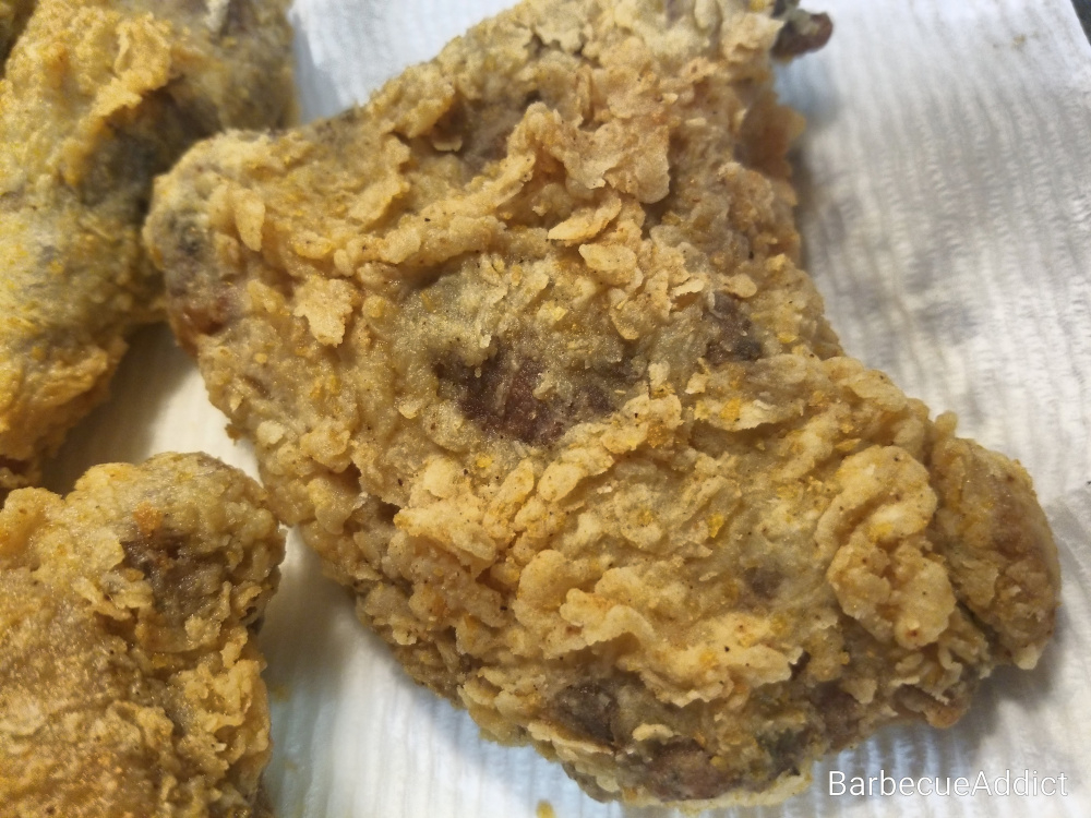 I used the same method for frying both the guinea hen and chicken skin that I used earlier this month to work on my fried chicken game.  I made the wet batter a little thinner to account for the meat already being cooked.  Trimmings saved from a pair of SRF Wagyu picanhas that were dry aged for 75 days were rendered to make dry aged tallow, which was blended with corn oil for frying.
