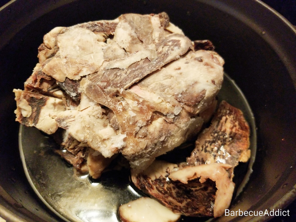 As I planned to use the breast meat for the nachos, I made sure to debone them.  This ended up causing them to have an odd shape after they'd been crammed into and cooked in a FoodSavor bag (top center).