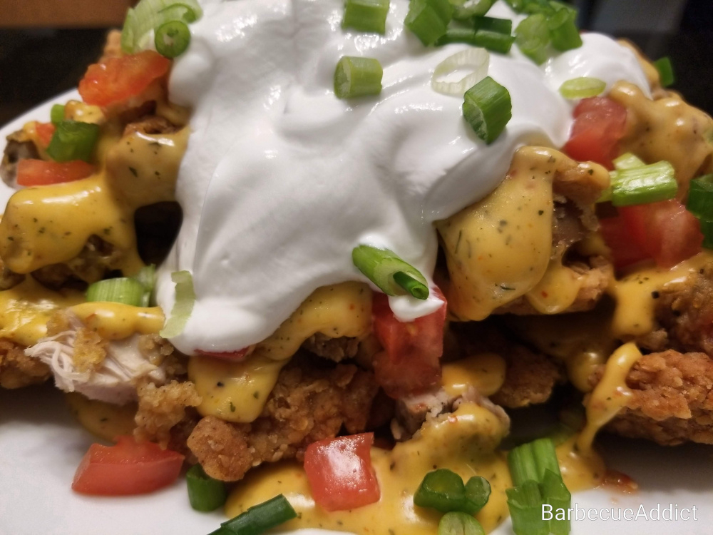 Fried Jerk Guinea Hen Chicken Skin Nachos - OT