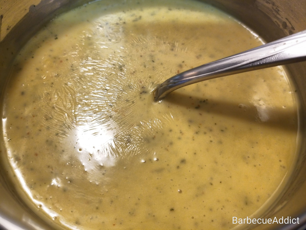 Cheese sauce was fashioned from heavy cream, American cheese, Monterey Jack, garlic & onion powder and some coarsely ground dehydrated peppers.
