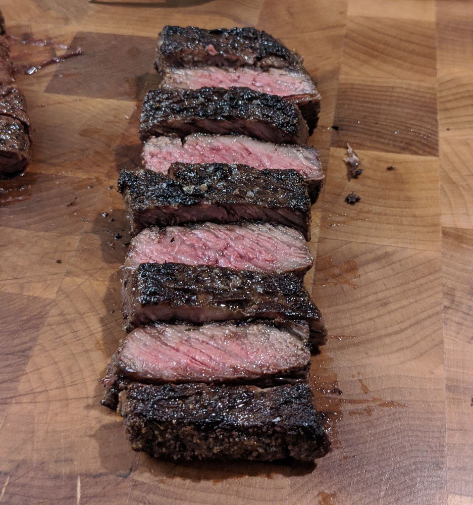 One of the Denver cuts cooked in cast iron on the green egg basted with ghee.Have: