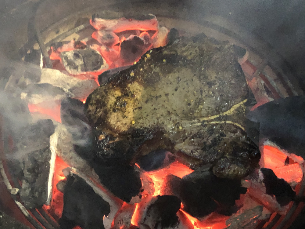 Dumb Question here: doesn't the steak pick up a bunch of ash, cooking this way?