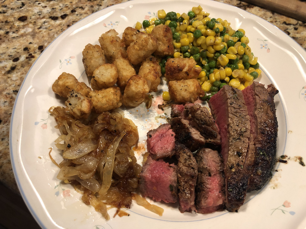 Steak seasoning, lots of pepper, and some cayenne. Rested on the counter about an hour and sprayed with canola oil. 2 minutes per side, twice...
