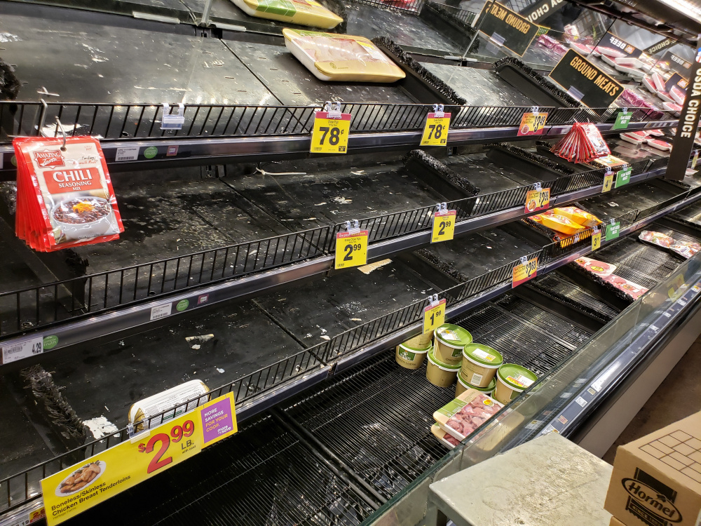 The paper goods aisle at Walmart this morning. So bare they could paint the shelving. Folks that sat back and chastised others for stocking up can enjoy wiping their ass with leaves. Watch out for poison ivy 😉