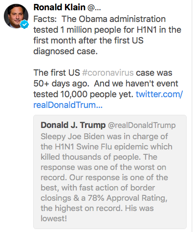 We have known this virus was NOT contained in China since the first week of the New Year. Yet the president chose to do nothing.