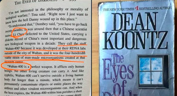 You should have shown the other spooky part of that novel - that the virus came out of Wuhan, China!!!!
